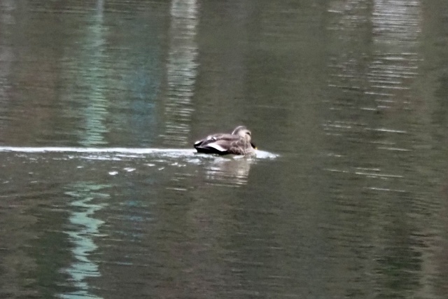 修法ヶ原池でも水鳥は少なく2匹のカルガモのみ