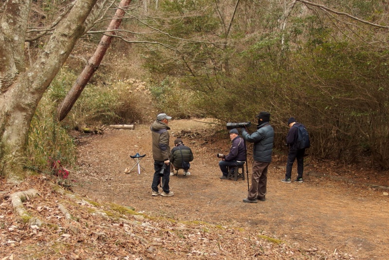 本日のBirdWatching風景・・・左が植物園の常連さんのNakatukaさんで、お隣の再度公園まで出張です