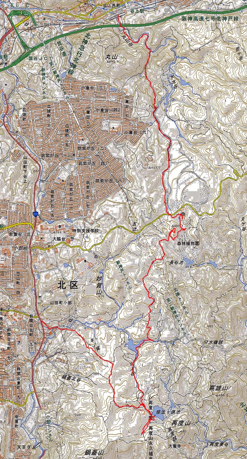 武庫之荘8:18=8:21西北26=8:41神戸三宮・地下鉄三宮49=8:59谷上9:13=9:35二軒茶屋-10:20再度公園-13:09神戸森林植物園西門-正門14:40-15:48登山口-谷上16:26-16:36地下鉄三宮・神戸三宮43=17:13武庫之荘