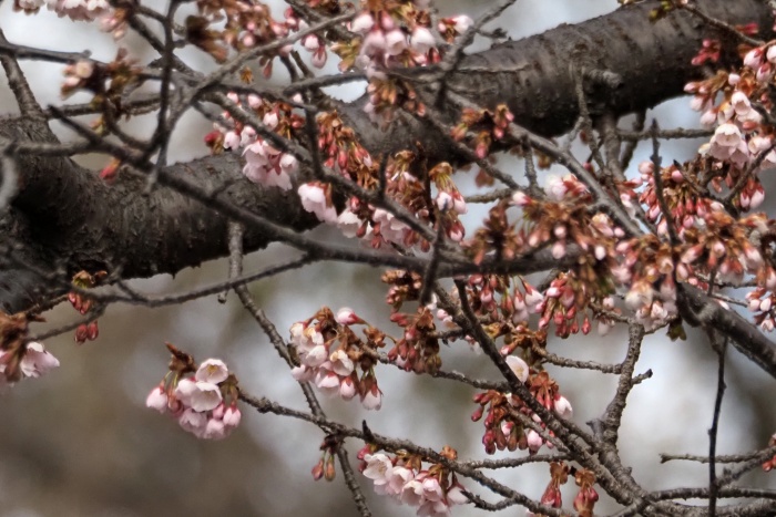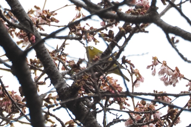 少し先の桜は充分咲いていて、ここでもメジロ待つが・・・