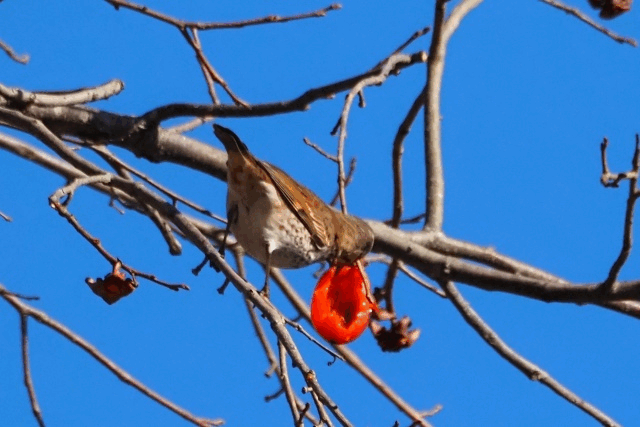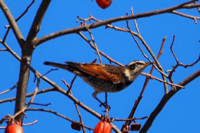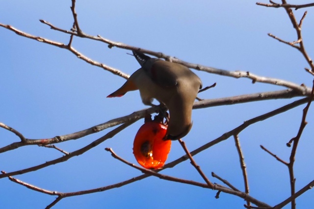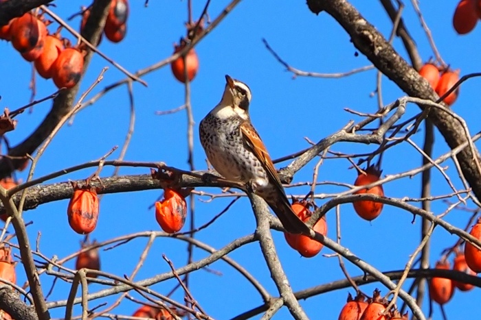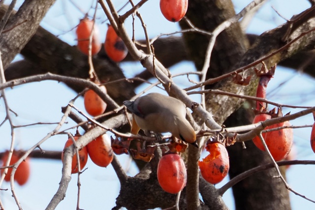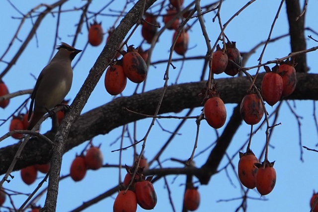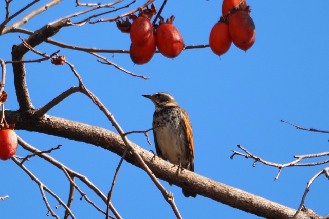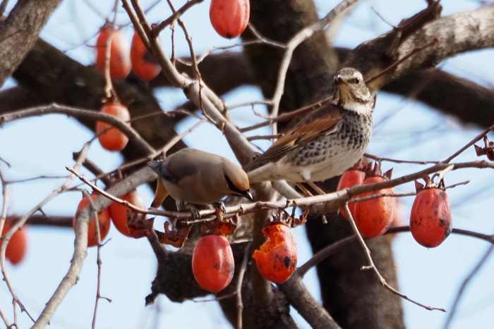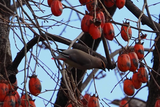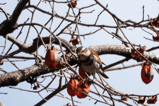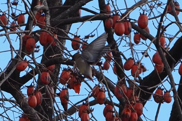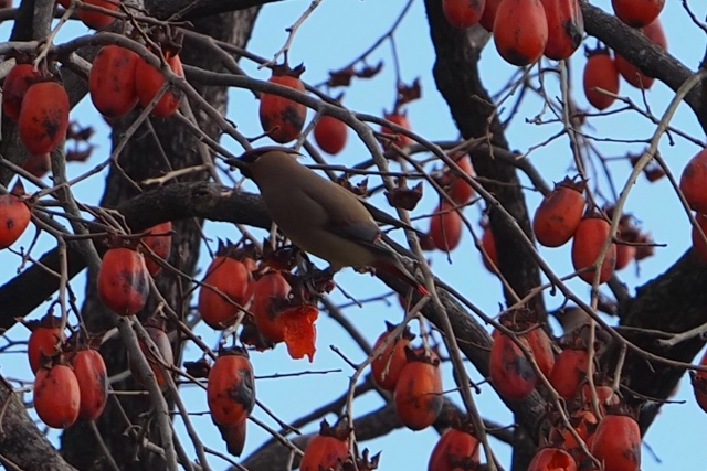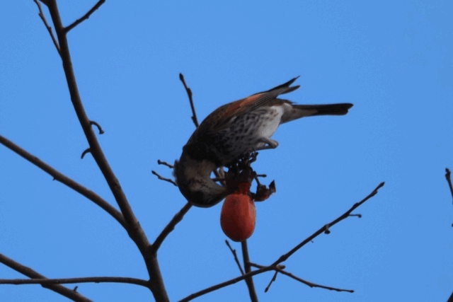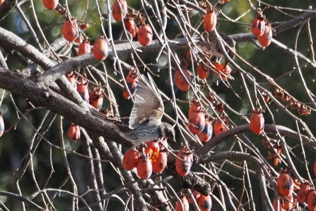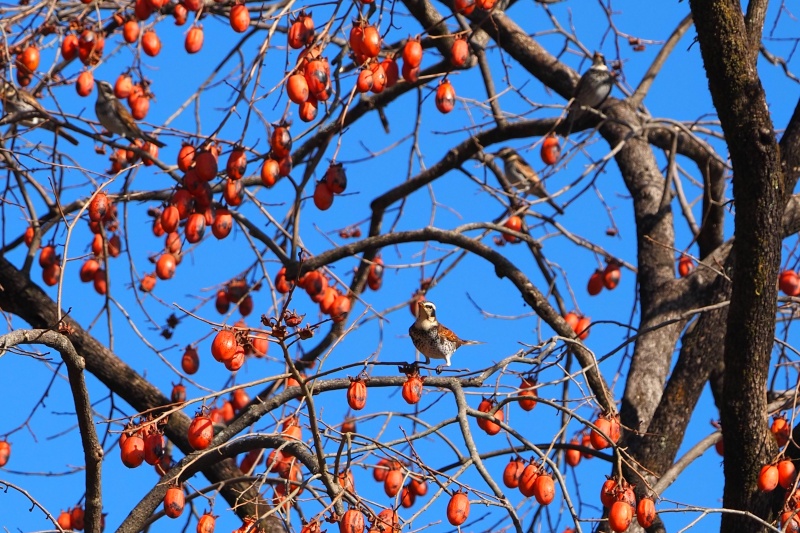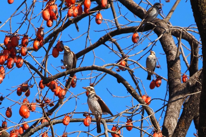 昨年も宿り木でレンジャク見なかったが、今年も駄目で柿の実にツグミ20羽位集ってます