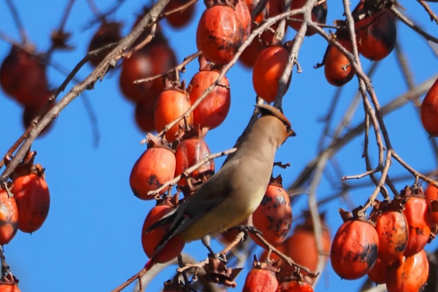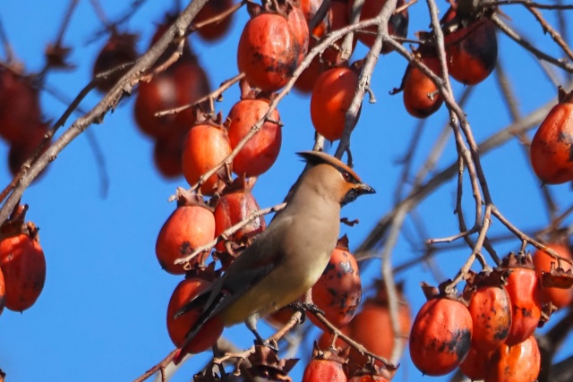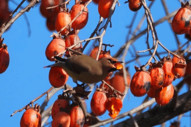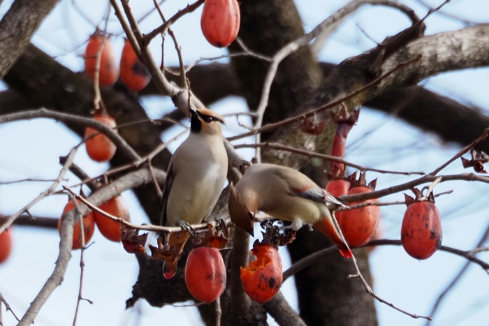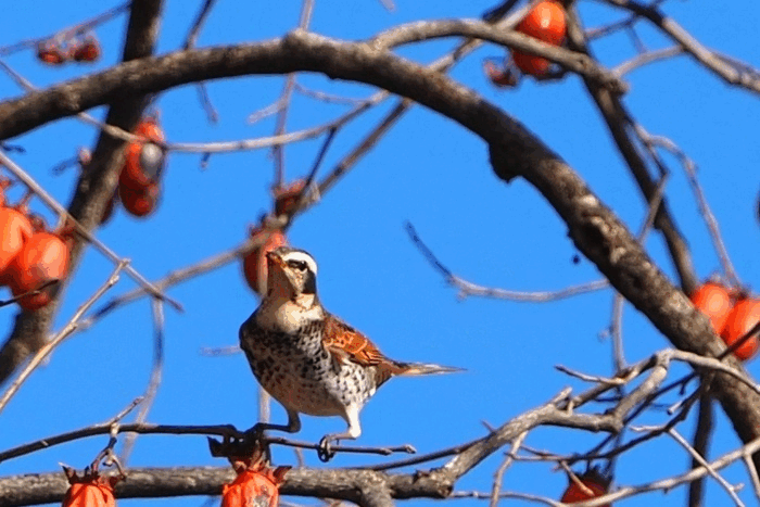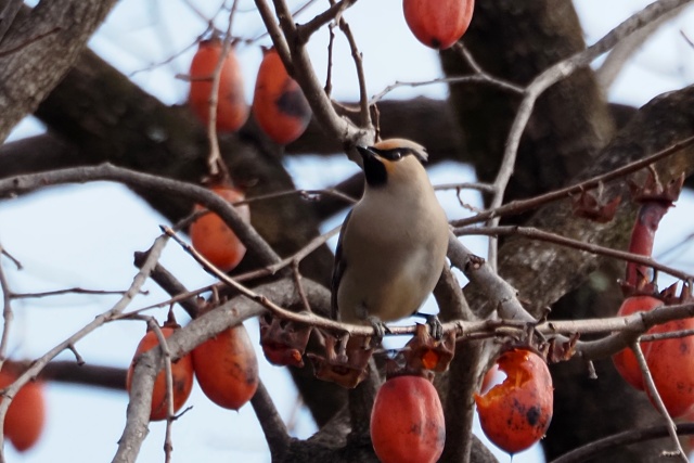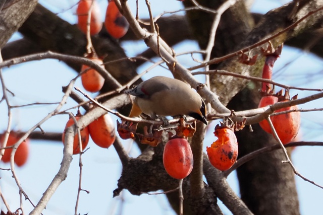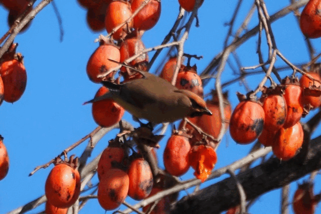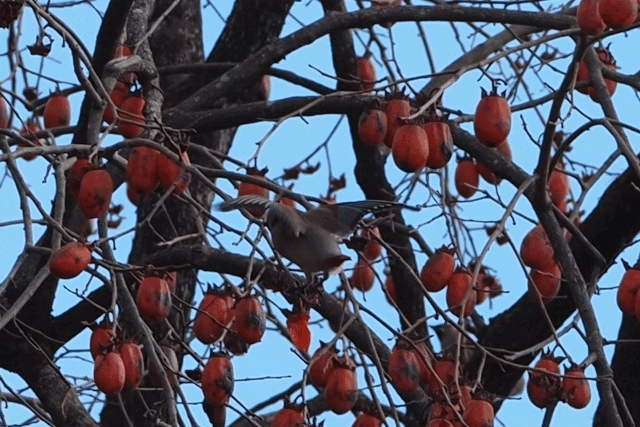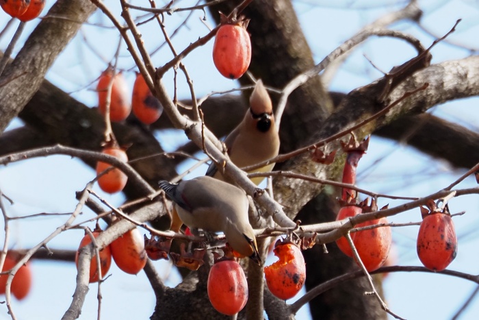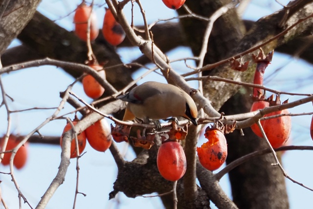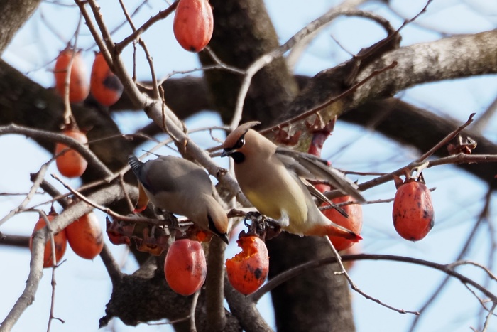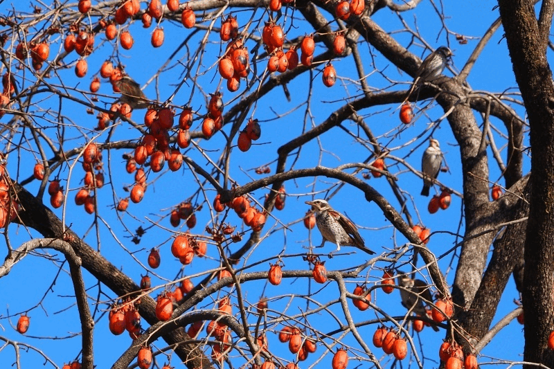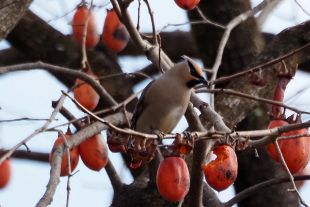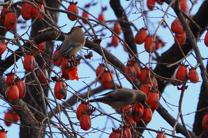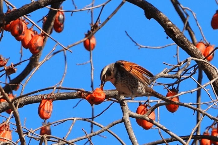 昨年も宿り木でレンジャク見なかったが、今年も駄目で柿の実にツグミ20羽位集ってます