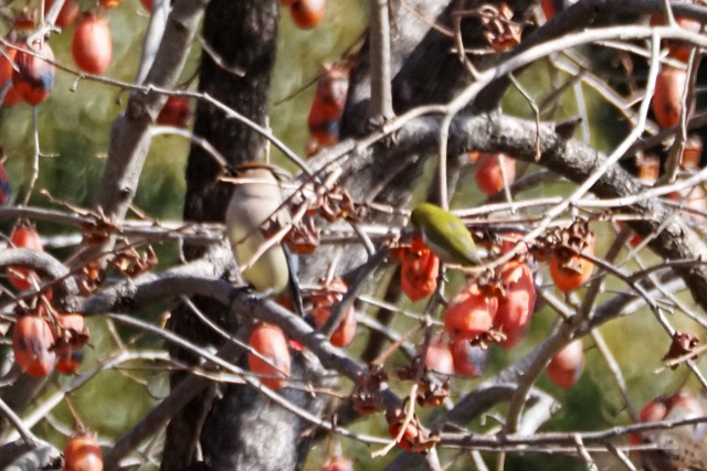 11時14分メジロが来て撮ったが、横にボケたレンジャクがいたわ(現場では分からず)