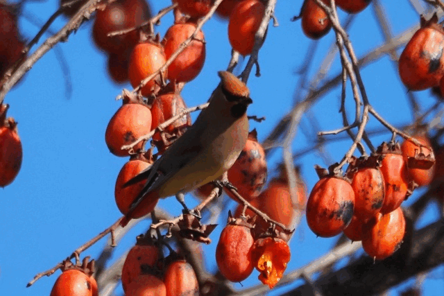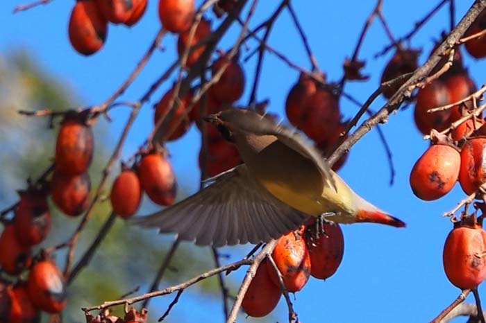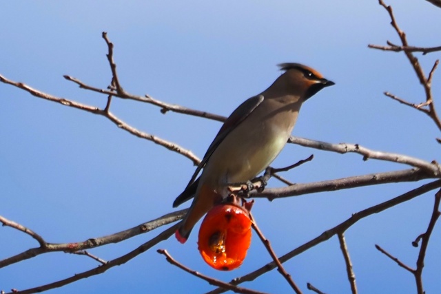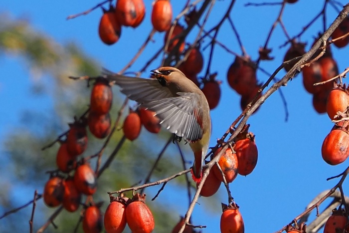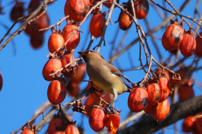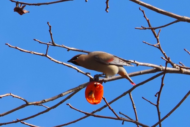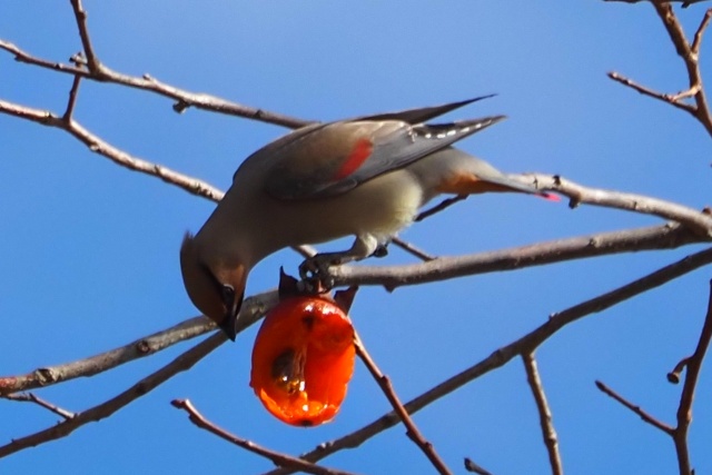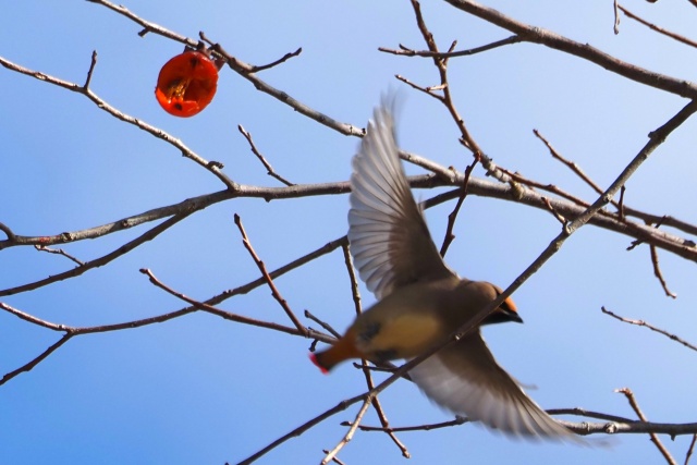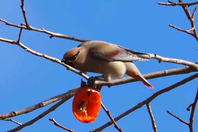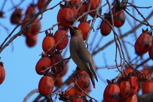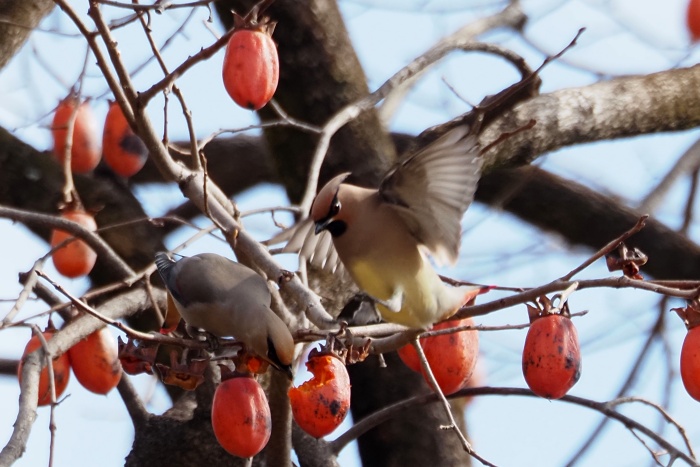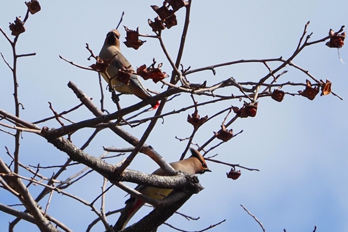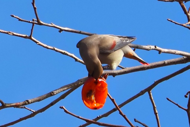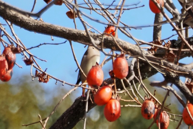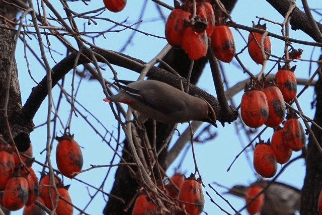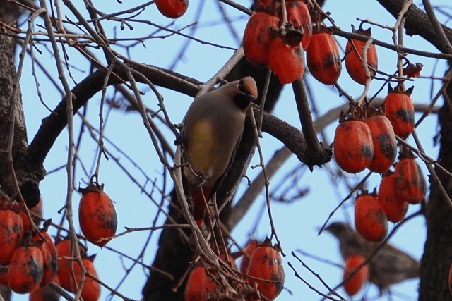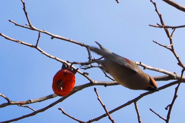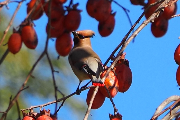 11時46分、やっとこさ数羽の緋レンジャクだ