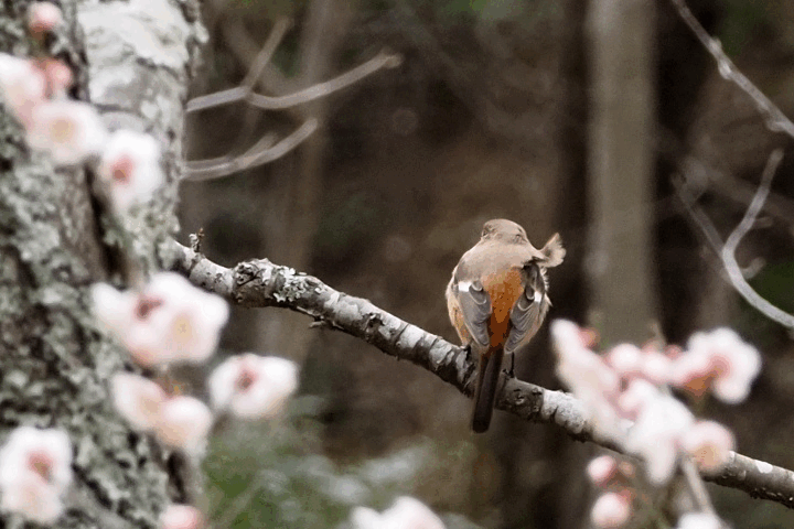 桜の木に止まって、梅花は少し離れた位置関係でボケボケ梅花