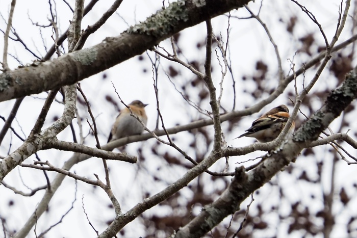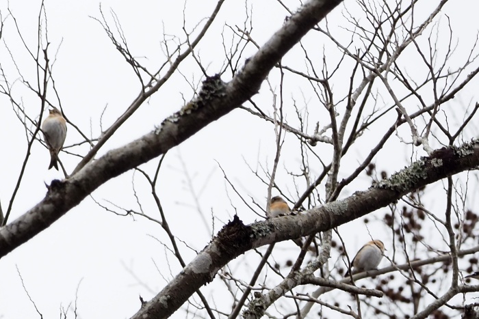 アトリが集団で上空飛び回ってますが、映像撮れず数羽なら撮れます