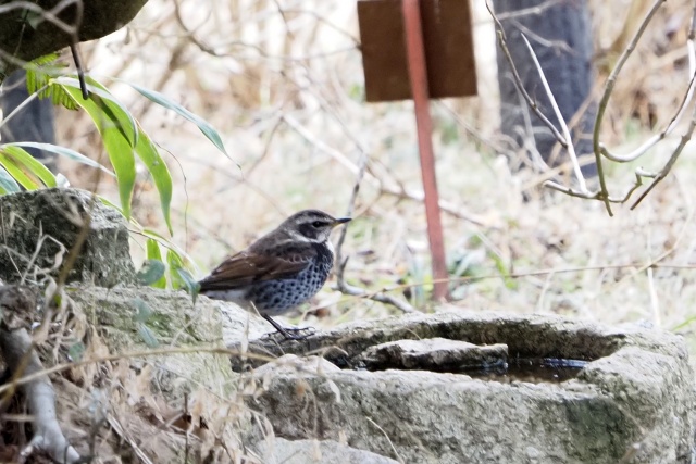 水場ではやっとツグミが出てきた