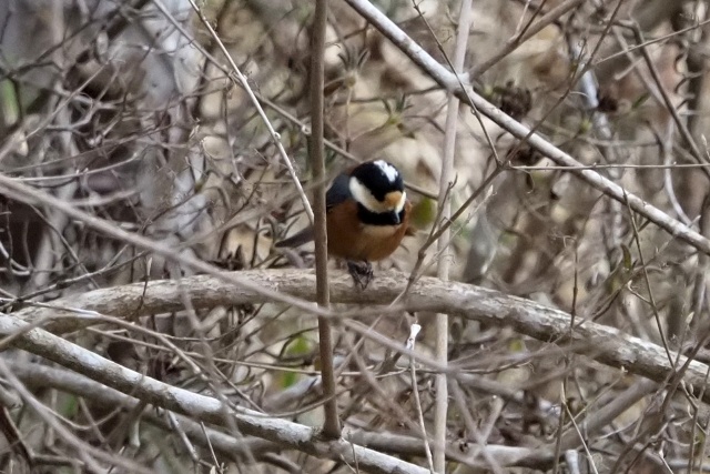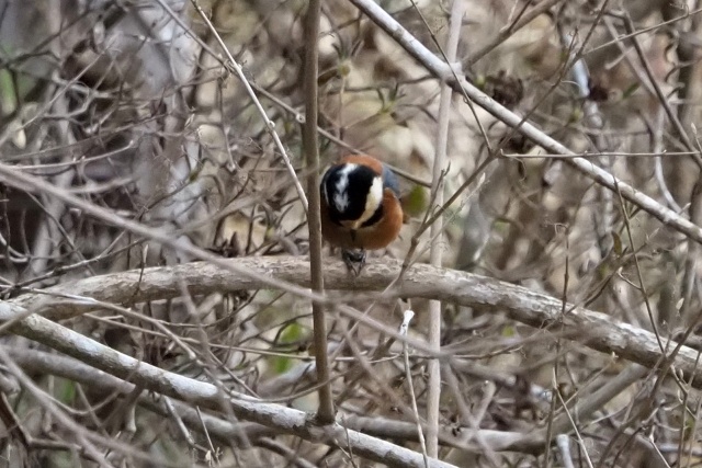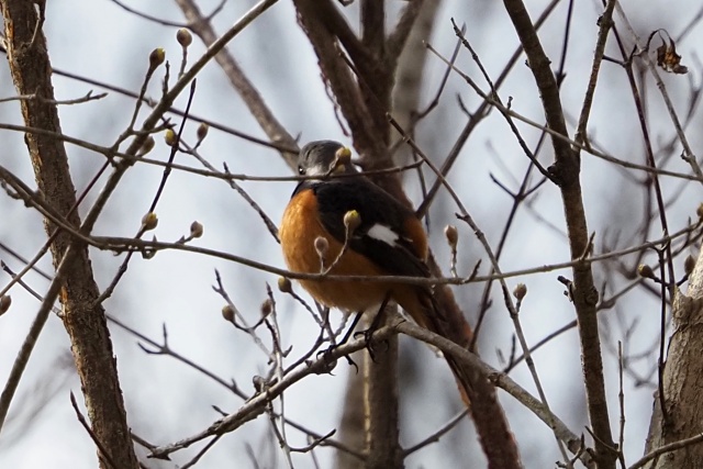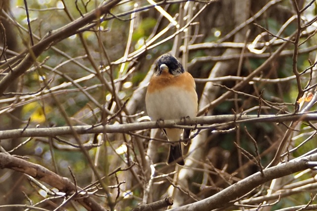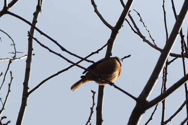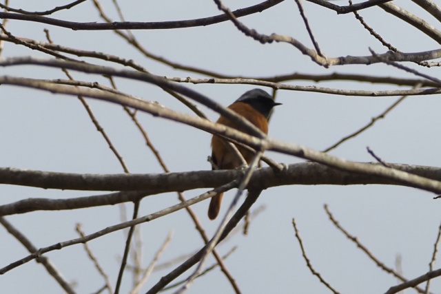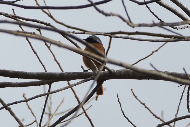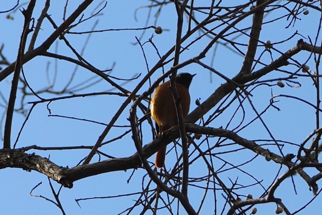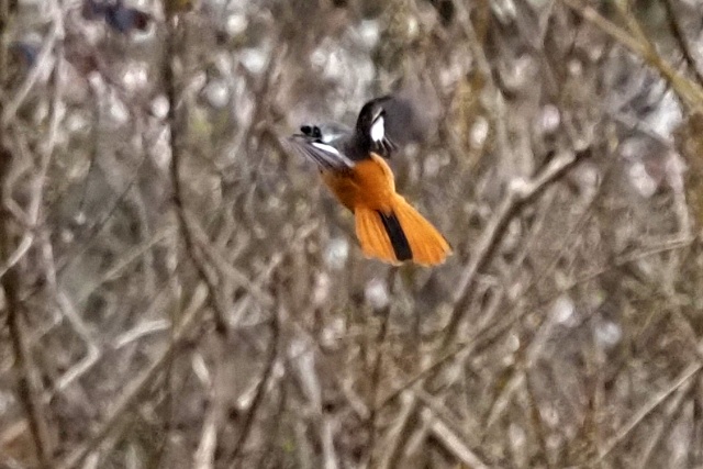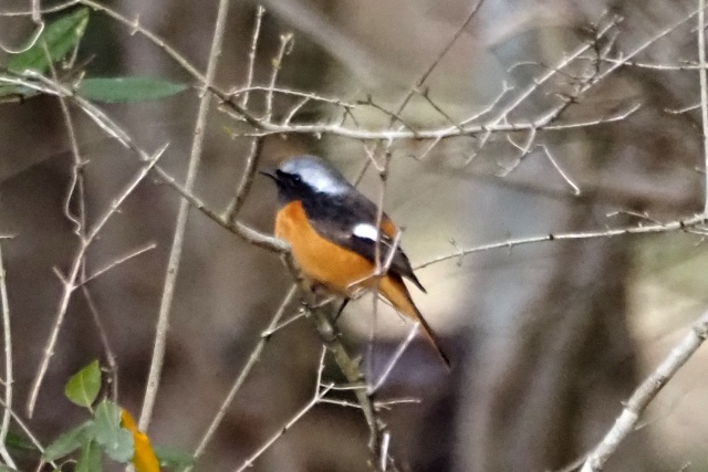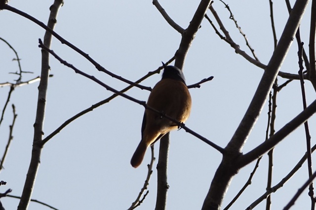 小枝が邪魔だが、再びジョウビタキ雄